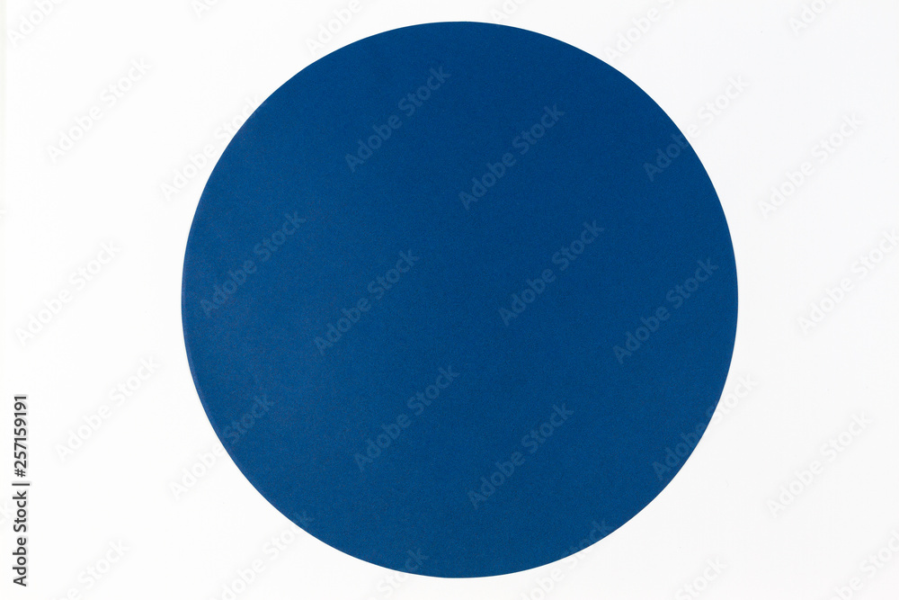 Abstract minimal color paper background. Blue round circle on white background. Top view, flat lay