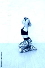 Beautiful young sporty muscular fitness model. Copyplace, copy space.