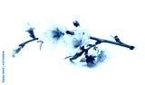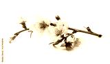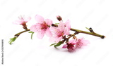 Blooming peach flowers on twig isolated on white background