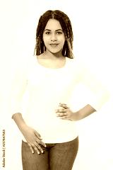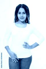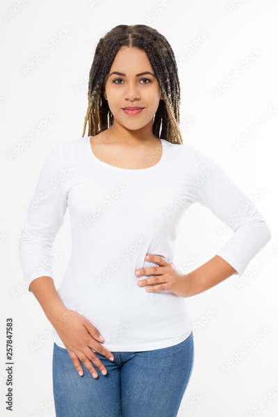 Summer t shirt design and people concept close up of young afro american woman in blank template white t-shirt. Mock up. Copy space. African hair style. front view.
