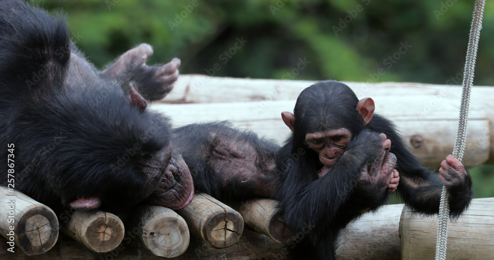 chimpanzee with his child , South Africa