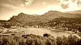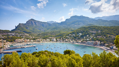 Panoramic view of Port de Soller, Mallorca, Spain.