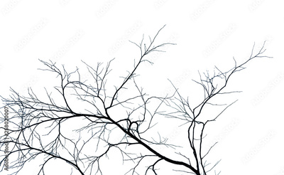 Dead tree and branch isolated on white background. Black branches of tree backdrop. Nature texture background. Tree branch for graphic design and decoration. Art on black and white scene.