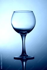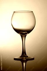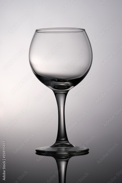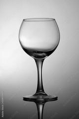 Black and white photograph is an empty glass for wine on a gray gradient background.
