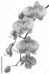 blossoming beautiful branch of trendy color proton purple orchid, phalaenopsis with drops is isolated on background, make up