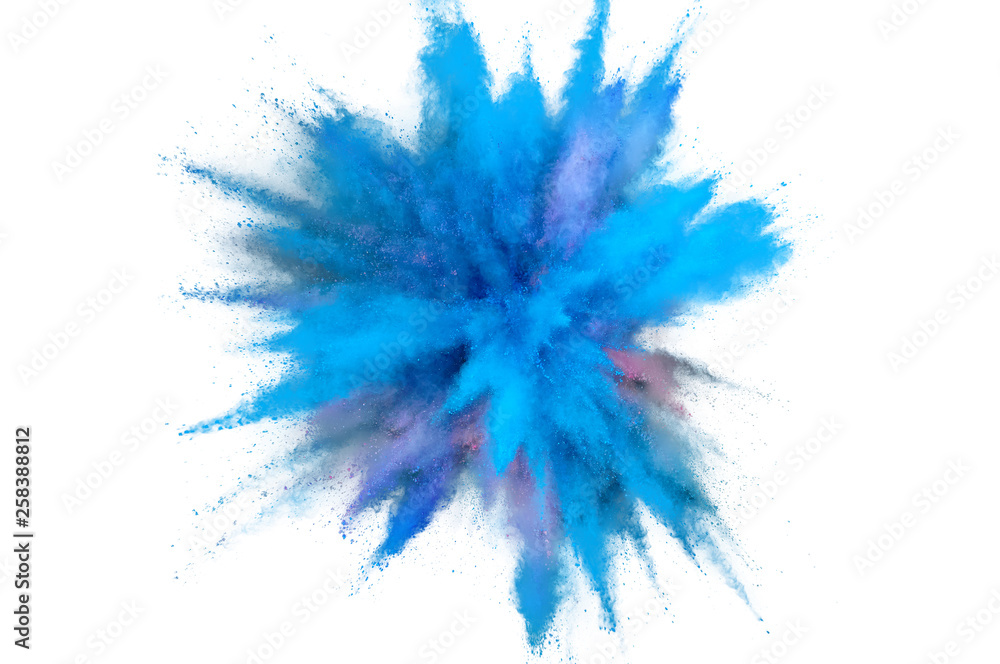 Colored powder explosion. Abstract closeup dust on backdrop. Colorful explode. Paint holi