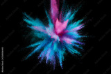 Colored powder explosion. Abstract closeup dust on backdrop. Colorful explode. Paint holi