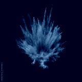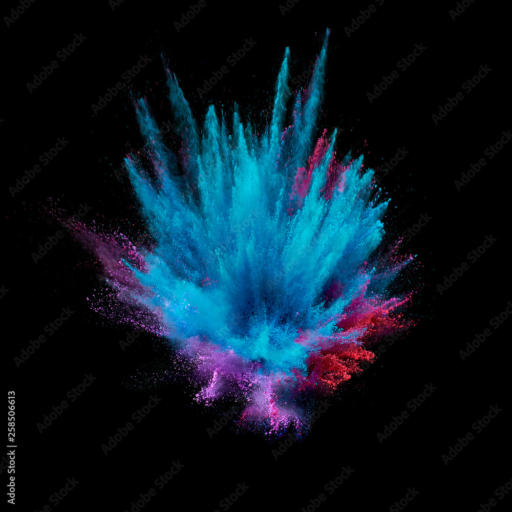 Colored powder explosion. Abstract closeup dust on backdrop. Colorful explode. Paint holi