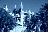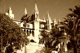 Palma Mallorca cathedral Santa Maria La Seu side view palm trees