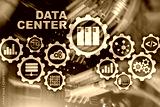 Data Center of the Future on a virtual screen. Business information technology concept. Storing data and securing business continuity