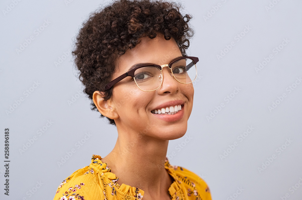 Happy young woman with eyeglasses