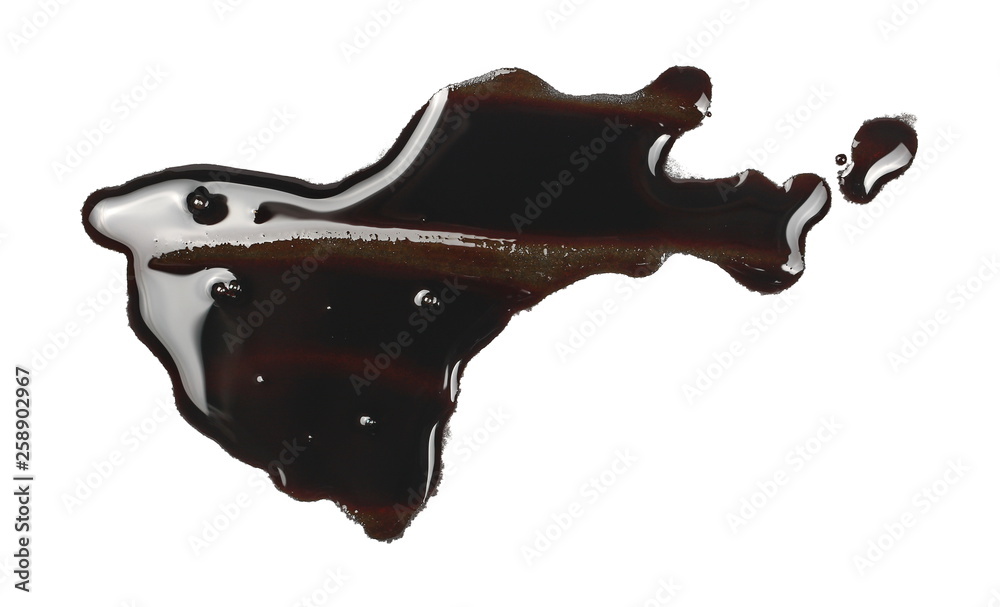 Old spilled engine oil puddle, splash isolated on white background, texture