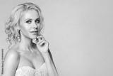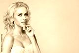 Fashion Models Beauty Portrait, Beautiful Woman Nude Makeup and Hairstyle, Girl Studio Shot over Beige background