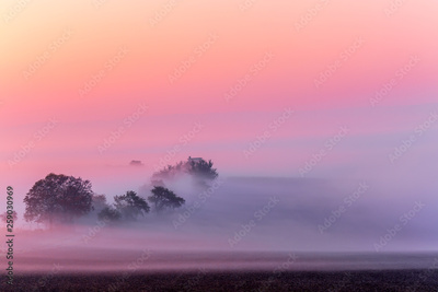 Amazing nature landscape in morning fog sunrise. Autumn scenic landscape of South Moravia in Czech Republic