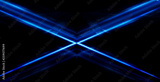 Tunnel in blue neon light, underground passage. Abstract blue background. Background of an empty black corridor with neon blue light. Abstract background with lines and glow, rays and symmetrical refl