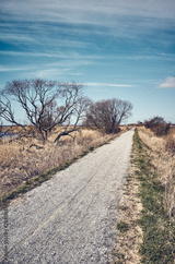 Pedestrian and bike path trail by Dabie Lake, color toning applied, Poland.