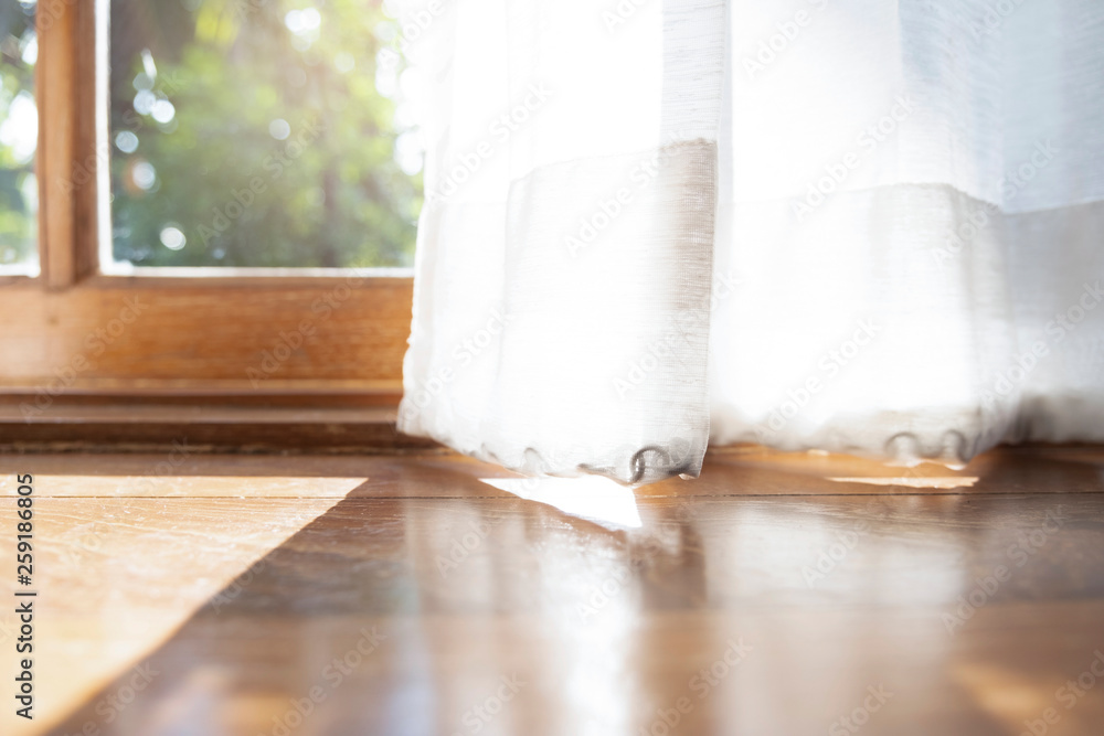 The light and shadow of morning on the silk blinder or curtain.