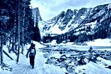 Winter hiker in a snowy Rocky Mountain National Park, Colorado