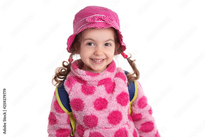 Beautiful smiling child on a white background. Little girl ready for school or kindergarten