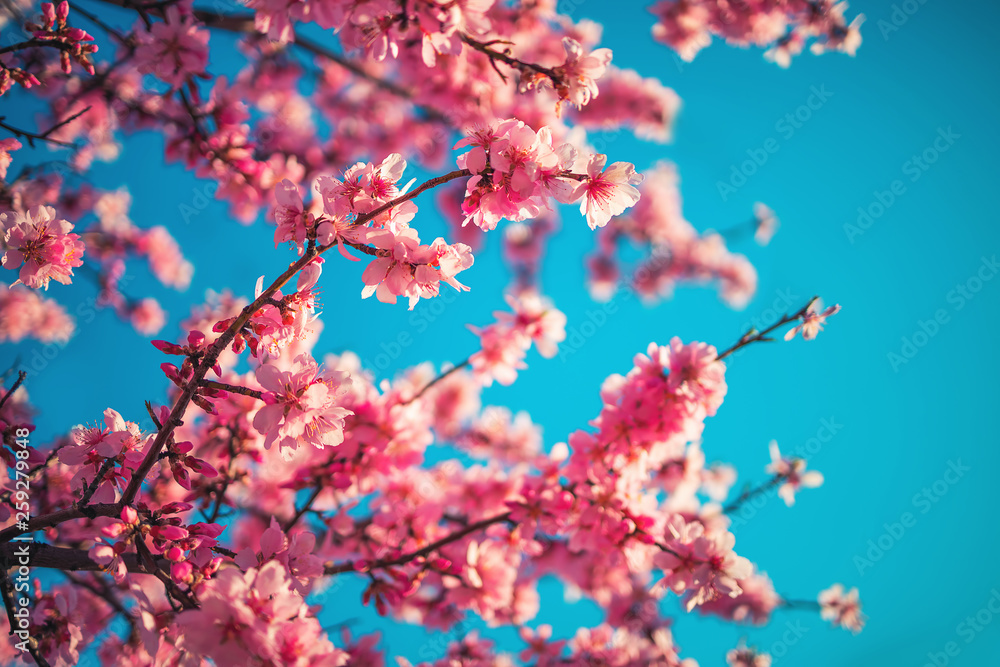 Soft focused pink blooming blossom. Macro shot of coming spring
