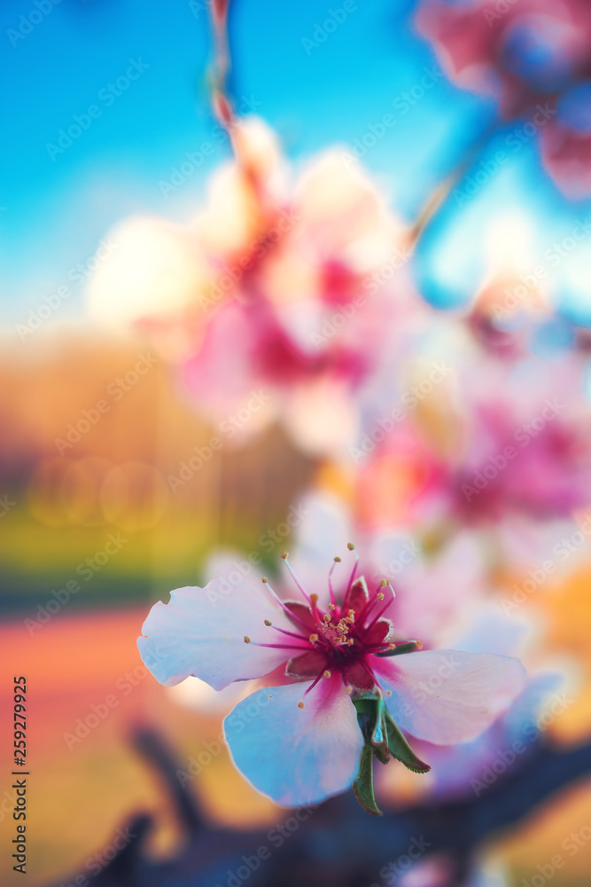 Soft focused pink blooming blossom. Macro shot of coming spring