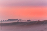 Amazing nature landscape in morning fog sunrise. Autumn scenic landscape of South Moravia in Czech Republic