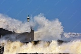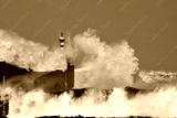 Stormy wave over lighthouse of San Esteban de Pravia.