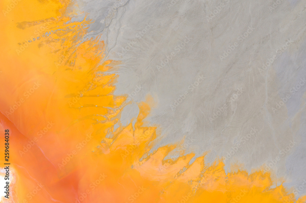 Aerial view of a mining decanting pond with toxic red residuals