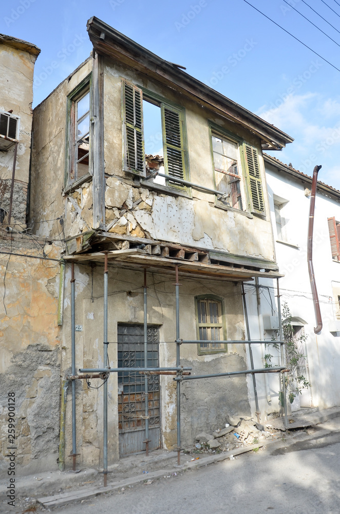 March 8, 2018. Nicosia, Cyprus. Abandoned house with broken windows on Turkish side of Nicosia, Cyprus