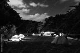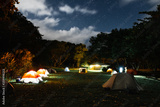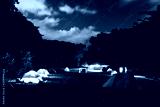 Green lawn with hiking tents set under the stars in the camping of Waianapanapa State Park. Maui, Hawaii