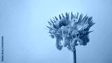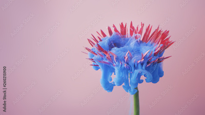 Pink daisy flower with pastel blue ink. Creative abstract spring nature. Summer bloom concept.