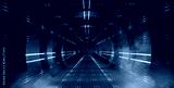 Abstract tunnel, corridor with rays of light and new highlights. Abstract blue background, neon. Scene with rays and lines, Round arch, light in motion, night view.