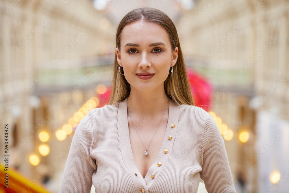 Beautiful blonde woman in the shop