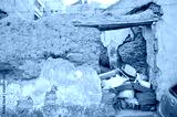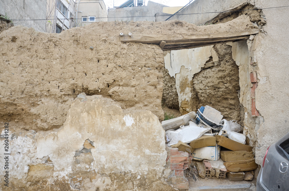 March 8, 2018. Nicosia, Cyprus. Abandoned house with broken door on Turkish side of Nicosia, Cyprus
