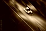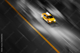 New York City yellow taxi in motion speeding down the street on a blurred background