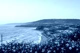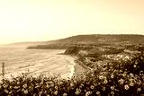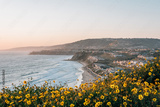 Yellow flowers and view of Strand Beach from Dana Point Headlands Conservation Area, in Dana Point, Orange County, California
