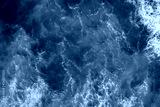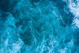 Top view of blue frothy sea surface. Shot in the open sea from above.