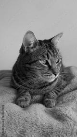 Striped cat on a blanket