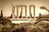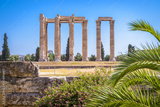 Temple of Olympian Zeus, Athens, Greece. It is one of the top landmarks of Athens. Famous Ancient Greek ruins in the Athens center in summer. Scenic view of remains of the antique Athens city.