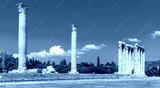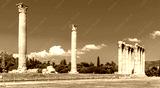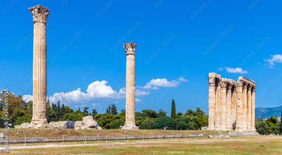 Temple of Olympian Zeus, Athens, Greece. It is one of the top landmarks of Athens. Panorama of famous Ancient Greek ruins in the Athens center. Scenic view of remains of the antique Athens city.
