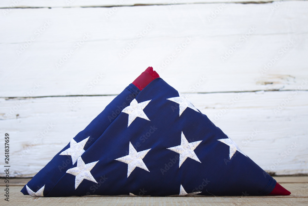 American flag on a wooden background for Memorial Day and other holidays of the United States of America.