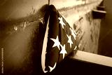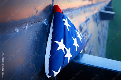 American flag on the background of grass and slab of the dead. Concept for Memorial Day and other holidays of the United States of America.