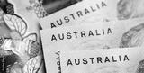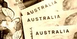 Australian fifty dollar banknotes. The new 2019 issue bill is designed to deter counterfeiting, the note is polymer and water resistant with a clear holographic strip.