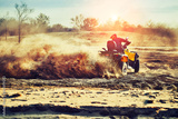 Teen riding ATV in sand dunes making a turn in the sand