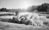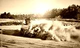 Teen riding ATV in sand dunes making a turn in the sand