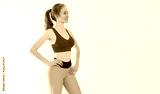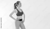 Young sporty girl in sport wear clothes isolated on white background. Happy weight loss woman body concept. Athletic body and adult activity. Copy space and banner