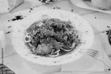 Uyghur lagman with fresh meat and vegetables on white plate.