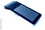 Online cash register on a white background. Banking equipment. Acquiring. Acceptance of bank credit cards.