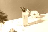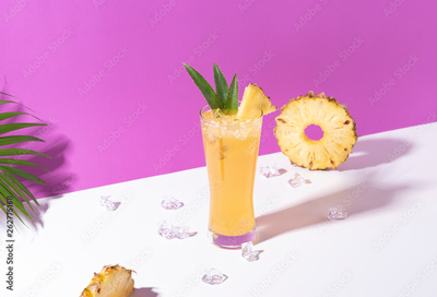 iced pineapple punch cocktail in glass on color background. summer drink.