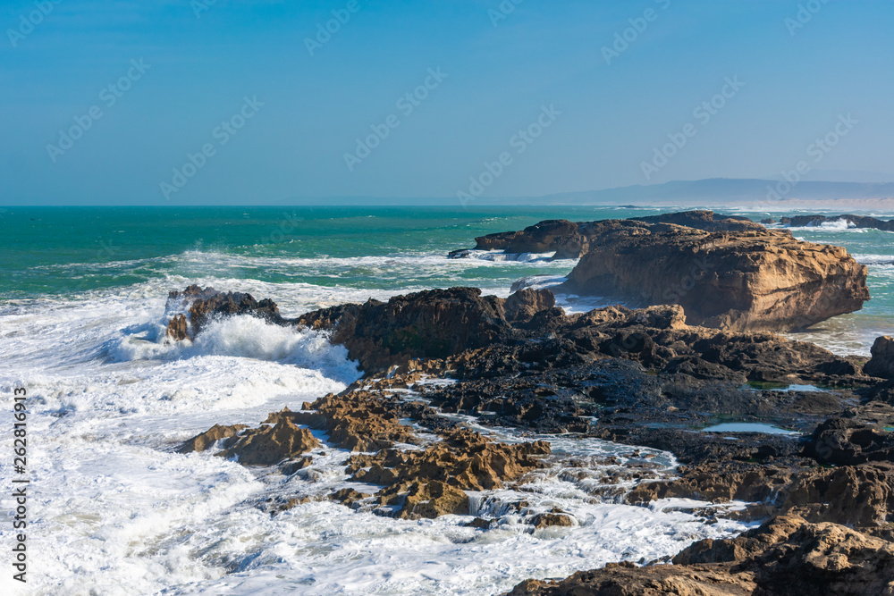 Atlantic Ocean and Rock Formations along the Coast of Essaouira Morocco